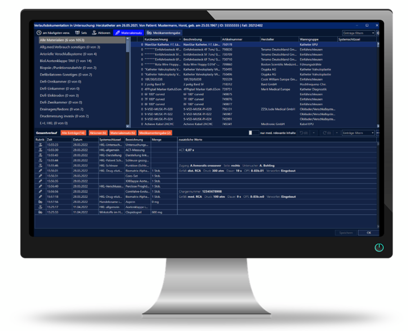 Alle dokumentierten Medikamente und Materialien können über das EL Management Studio untersuchungsübergreifend zurückverfolgt werden. Diverse Filter-Eingaben erleichtern die Suche und ermöglichen eine schnelle und präzise Datenabfrage. Dies unterstützt Sie dabei, jederzeit den Überblick über den Materialverbrauch zu behalten und die Bestände effizient zu verwalten.