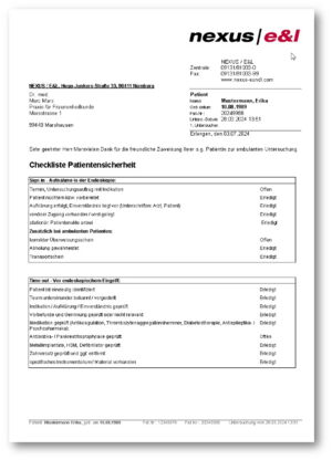 Auch für die pflegerische Dokumentation passt NEXUS / E&L die kundenspezifischen Workflows für jede Untersuchungsart und für die konkreten Verhältnisse in jedem Untersuchungsraum individuell an.