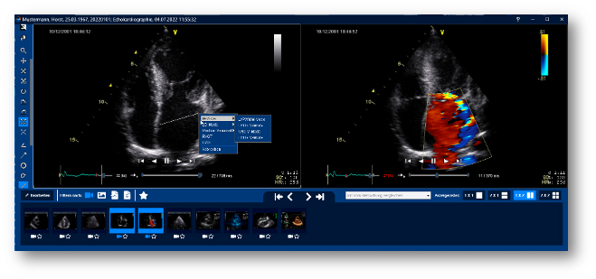 Über die integrierte Anwendung VIDIVI lassen sich Messpunkte präzise setzen, Intervalle bestimmen und Messergebnisse automatisch in das Formular übernehmen. Die nahtlose Anbindung an MEDICS sorgt dabei für eine strukturierte, revisionssichere Dokumentation – ganz ohne manuelle Zwischenschritte.